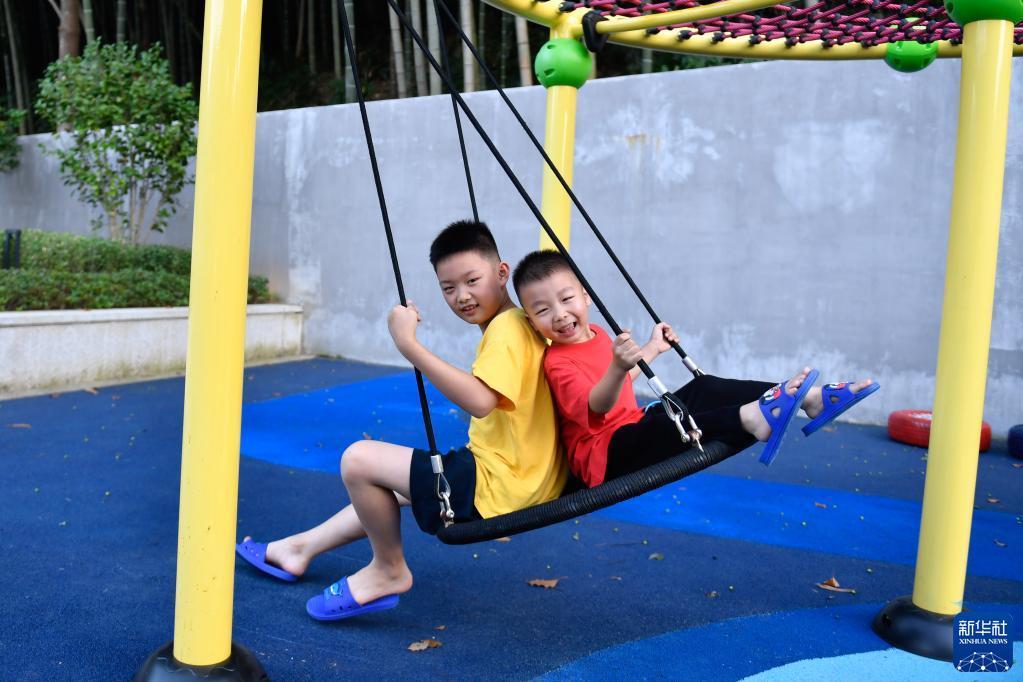10月2日,小朋友在浙江省桐廬縣鐘山鄉一家民宿玩耍。