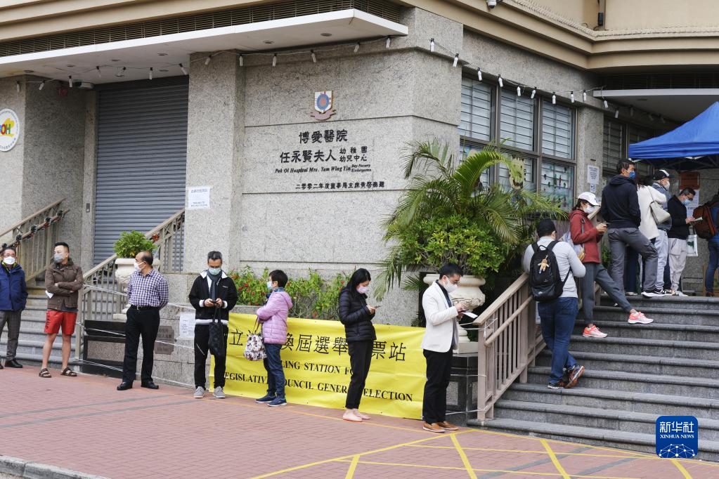 12月19日,在位于香港黃埔的投票站,選民在排隊準備投票。新華社記者 王申 攝