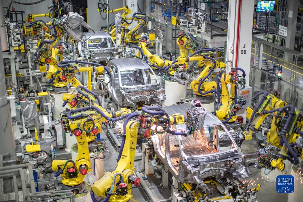 重慶一家新能源汽車(chē)企業(yè)使用智能化焊接機器人進(jìn)行焊接作業(yè)(4月2日攝)。新華社記者 黃偉 攝