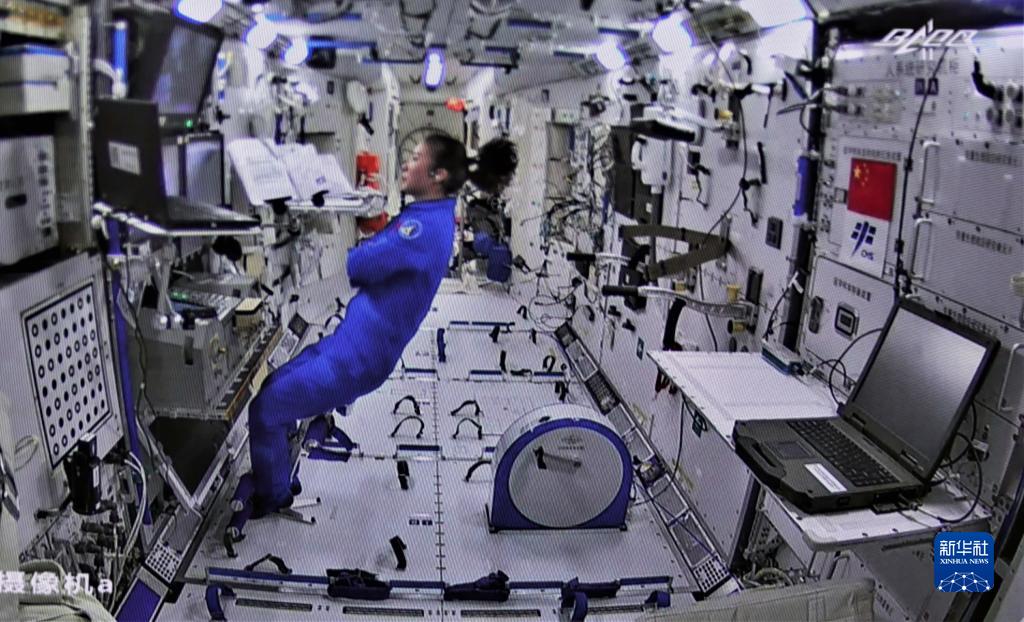 12月26日在北京航天飛行控制中心拍攝的神舟十三號航天員王亞平在核心艙內工作場(chǎng)景。新華社記者 郭中正 攝