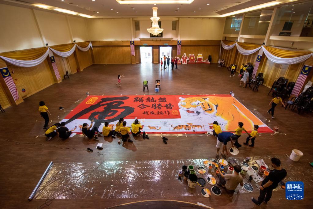 為迎接農歷虎年的到來(lái),文冬當地一家華人團體邀請畫(huà)家和學(xué)生一起創(chuàng )作了一幅11.5米長(cháng)、4.5米寬的老虎年畫(huà)。新華社發(fā)(張紋綜攝)