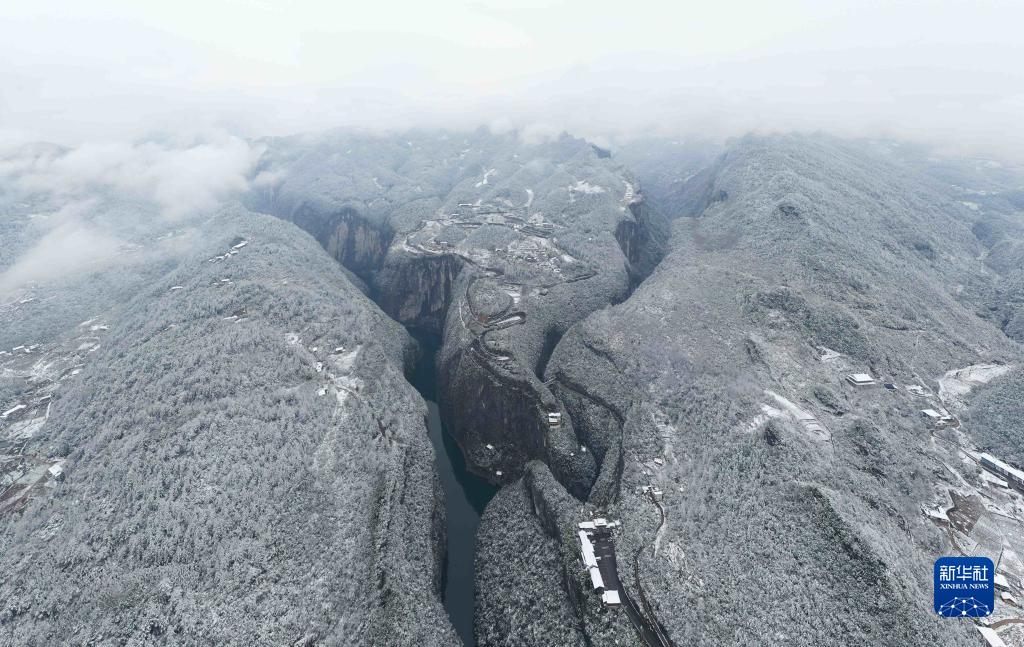 12月27日在湖北省鶴峰縣容美鎮屏山村拍攝的雪景(無(wú)人機照片)。
