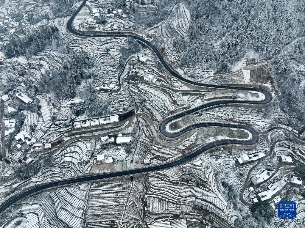 12月27日在湖北省宜昌市秭歸縣茅坪鎮拍攝的雪景(無(wú)人機照片)。