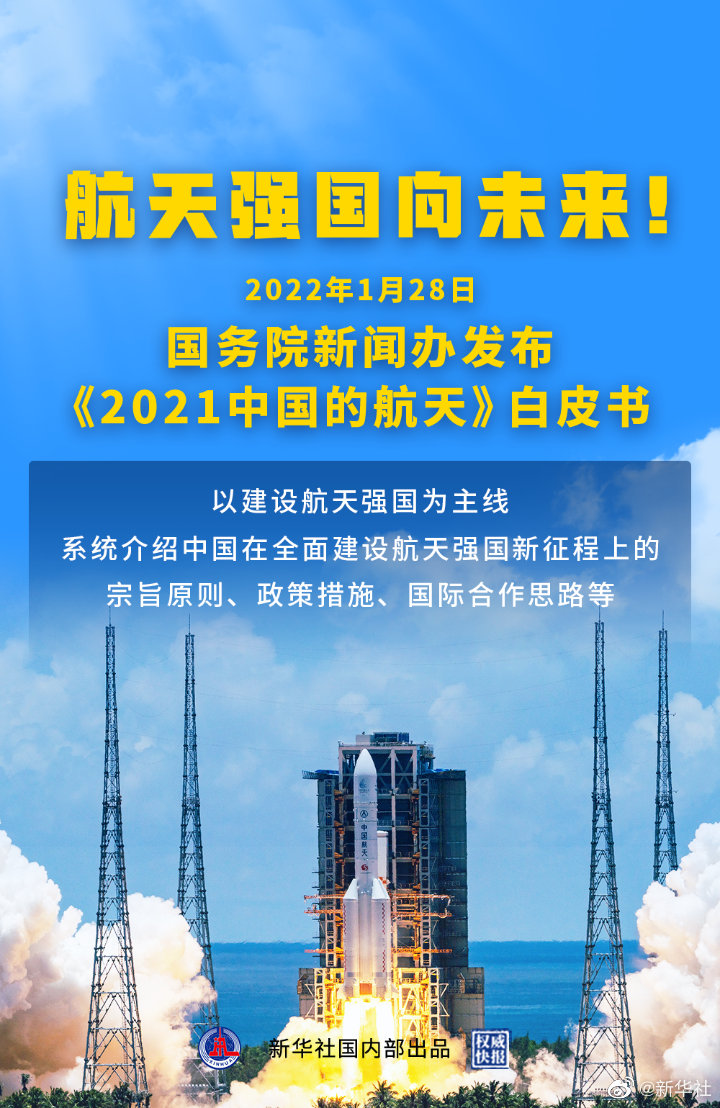 白皮書(shū)說(shuō),未來(lái)五年,中國航天將立足新發(fā)展階段,貫徹新發(fā)展理念,構建新發(fā)展格局,按照高質(zhì)量發(fā)展要求,推動(dòng)空間科學(xué)、空間技術(shù)、空間應用全面發(fā)展,開(kāi)啟全面建設航天強國新征程,為服務(wù)國家發(fā)展大局、在外空領(lǐng)域推動(dòng)構建人類(lèi)命運共同體、促進(jìn)人類(lèi)文明進(jìn)步作出更大貢獻。