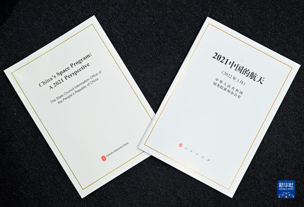 這是1月28日拍攝的《2021中國的航天》白皮書(shū)。當日,國務(wù)院新聞辦公室發(fā)布《2021中國的航天》白皮書(shū),并在北京舉行新聞發(fā)布會(huì )?!⌒氯A社記者 金良快 攝