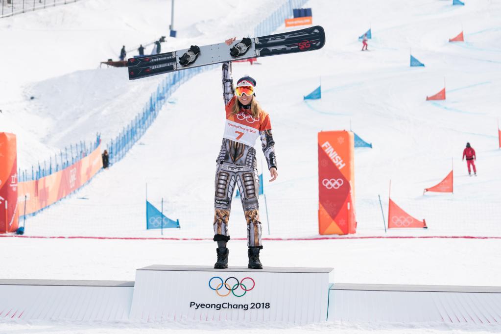 她成功衛冕單板滑雪平行大回轉