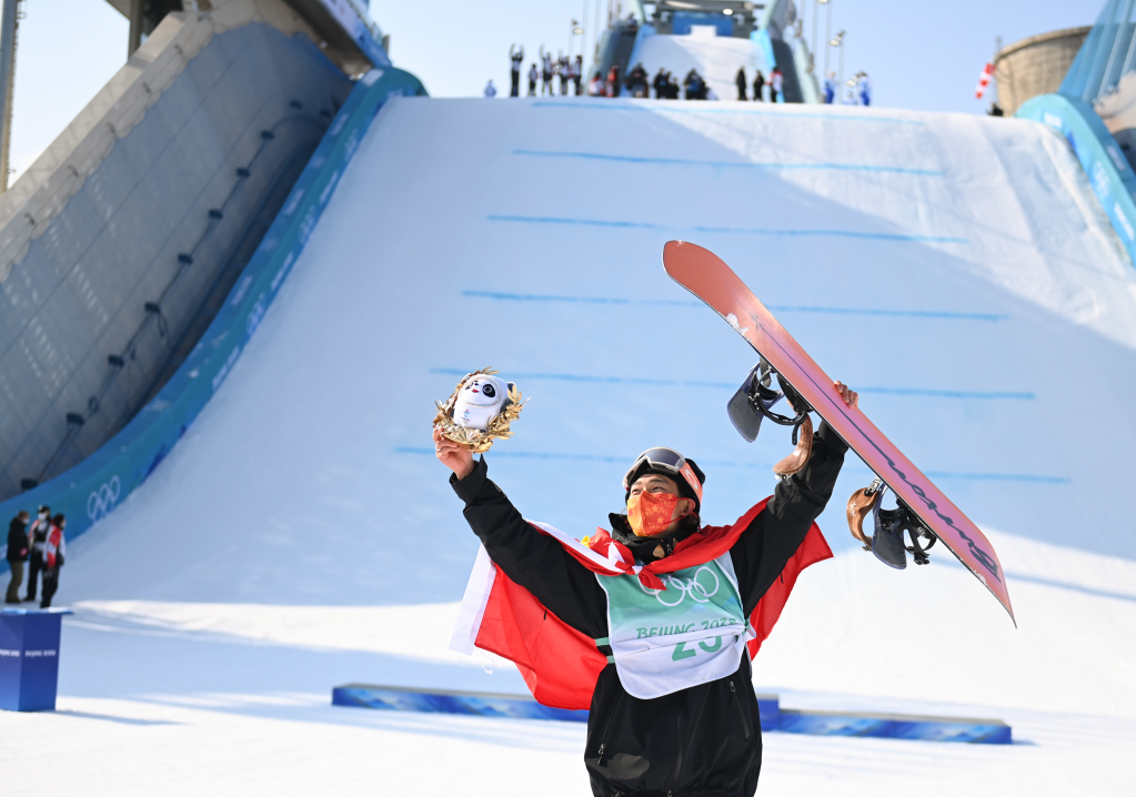 2月15日,中國選手蘇翊鳴在北京冬奧會(huì )單板滑雪男子大跳臺決賽奪得金牌。新華社記者黃宗治攝