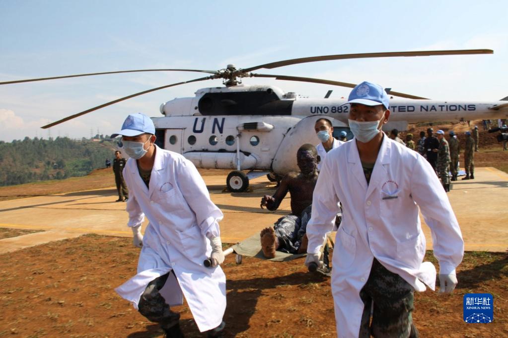 2010年7月3日,中國赴剛果(金)維和醫療分隊醫護人員在剛果(金)南基伍省布卡武機場(chǎng)運送油罐車(chē)爆炸中的受傷者。新華社發(fā)(郭云飛攝)