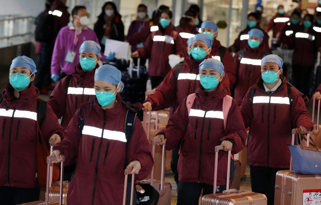 2月19日,在深圳灣口岸,第二批內地援港抗疫醫療防疫工作隊過(guò)關(guān)。新華社記者李鋼攝