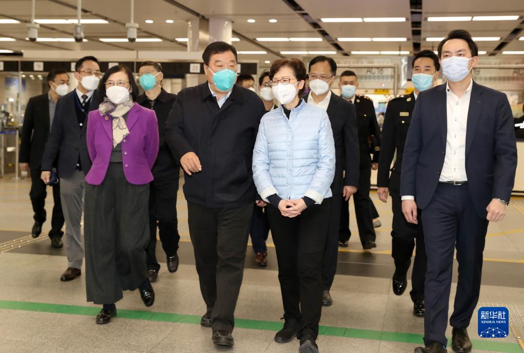 2月28日,香港特區行政長(cháng)官林鄭月娥等赴口岸迎接專(zhuān)家組一行。新華社記者 李鋼 攝