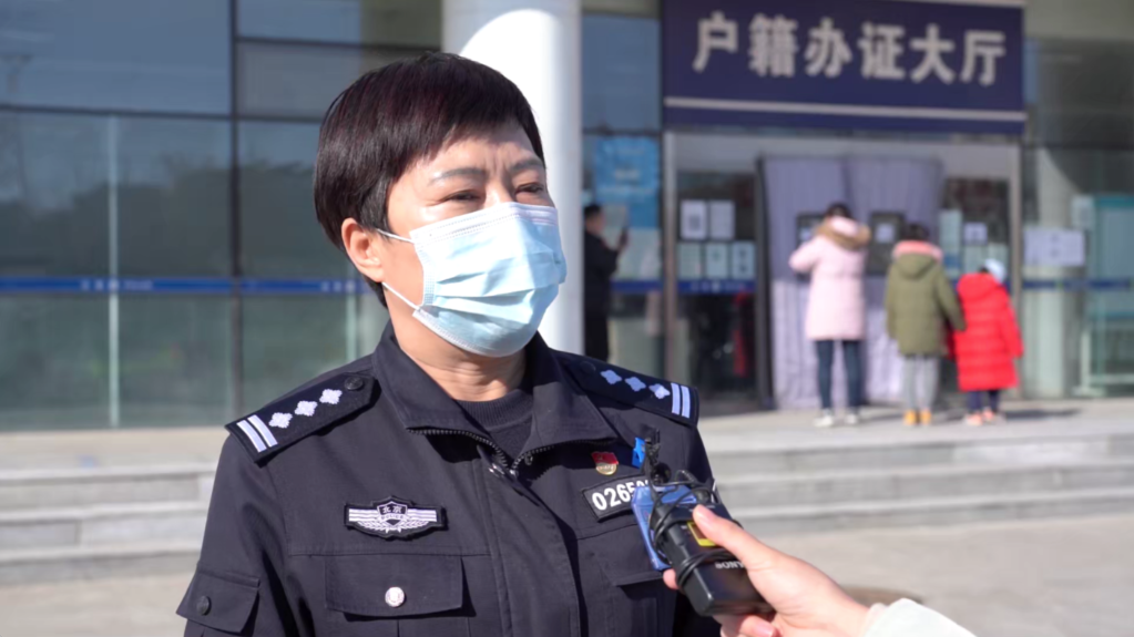 為姜女士辦理居住登記卡的北京市通州區焦王莊派出所民警郝建潔接受記者采訪(fǎng)。新華社記者 王普 攝