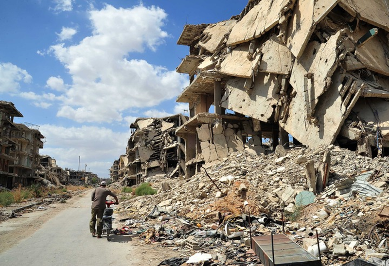 2021年9月23日,在敘利亞首都大馬士革城南的巴勒斯坦難民聚居區——耶爾穆克難民營(yíng),行人從建筑廢墟旁走過(guò)。耶爾穆克難民營(yíng)自2015年4月被極端組織“伊斯蘭國”占領(lǐng),此后三年間成為敘利亞政府軍與極端組織激烈交火的戰場(chǎng)。如今戰火雖已平息,但戰爭造成的巨大破壞仍隨處可見(jiàn)。新華社發(fā)(阿馬爾·薩法爾賈拉尼攝)