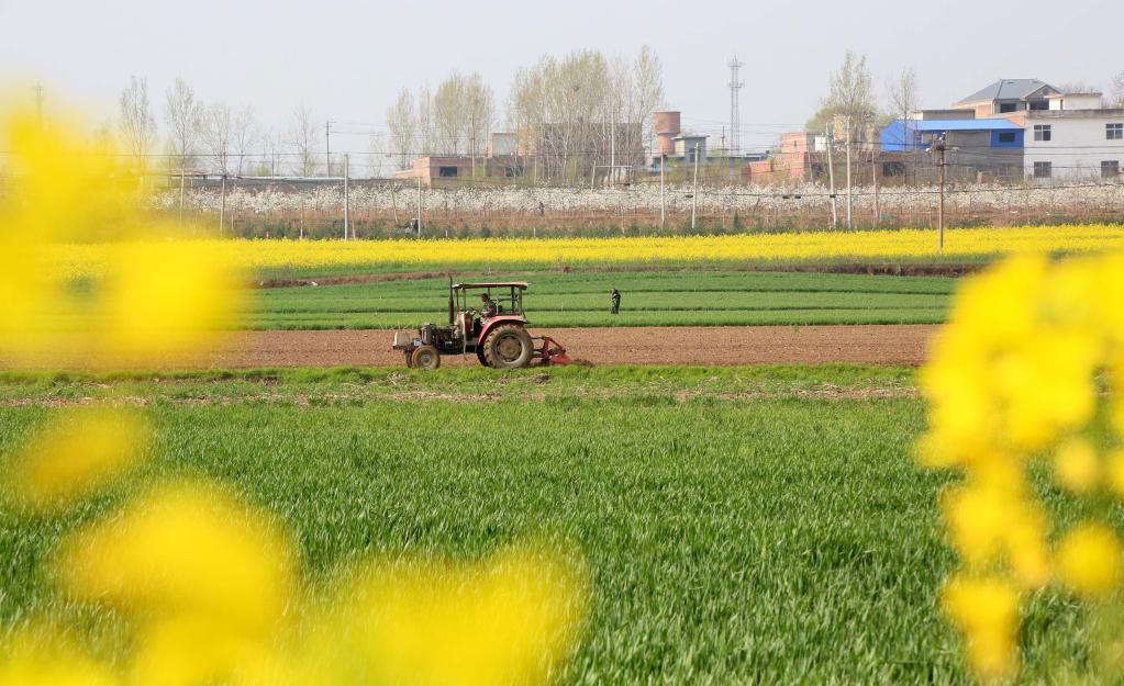 2022年3月29日,河南省洛陽(yáng)市汝陽(yáng)縣內埠鎮農民駕駛農機翻耕土地。(新華社發(fā))