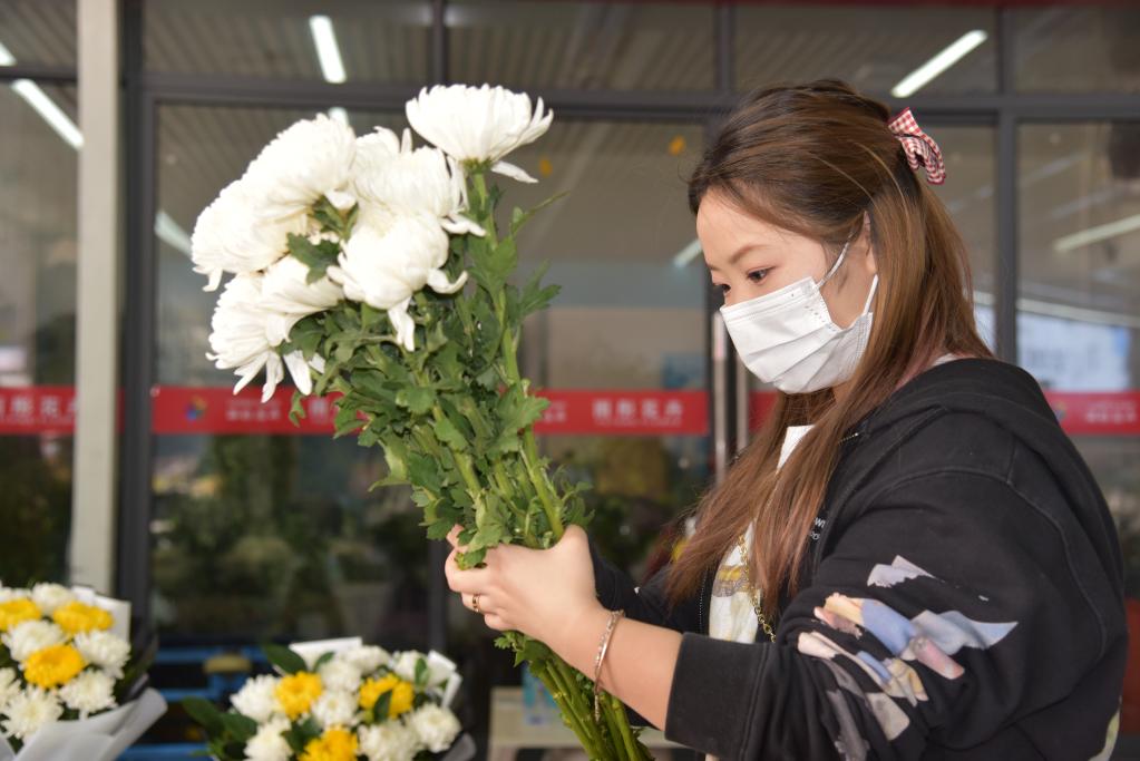 在花店門(mén)口,買(mǎi)了126枝菊花的一對老夫妻引起了記者的注意?!拔壹矣杏H人安葬在公墓,以前都是燒紙錢(qián)祭奠,紙灰漫天、煙霧嗆鼻。從前年起,我們開(kāi)始用鮮花祭掃,環(huán)保又安全?!苯衲?4歲的昆明市民楊青云說(shuō)。