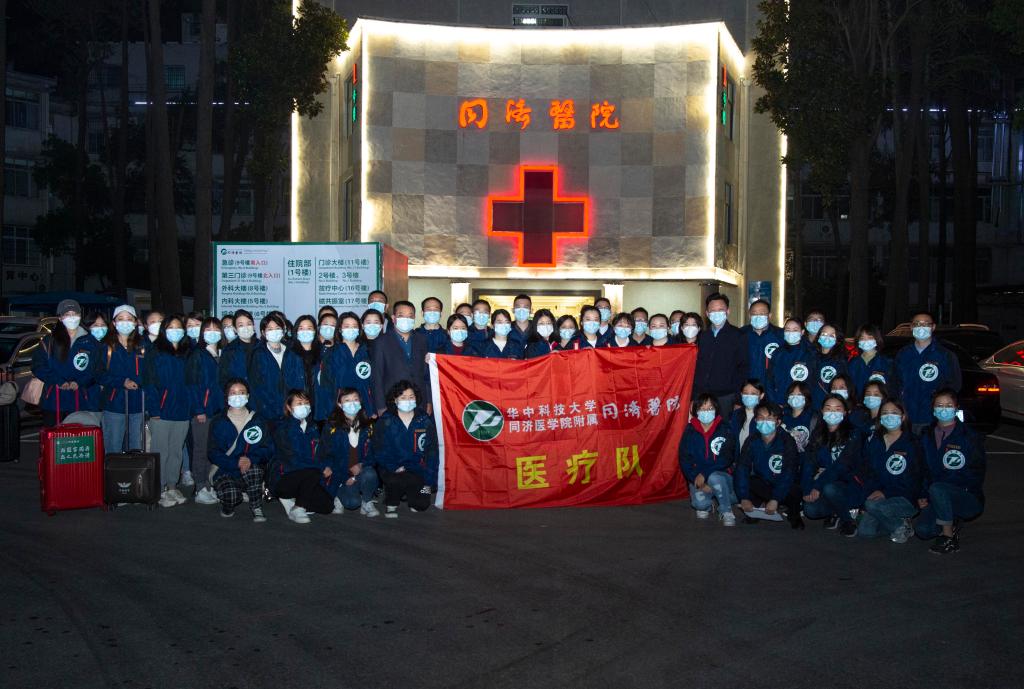 4月3日凌晨,華中科技大學(xué)同濟醫學(xué)院附屬同濟醫院援滬醫療隊集結,準備出發(fā)。(華中科技大學(xué)同濟醫學(xué)院附屬同濟醫院供圖)