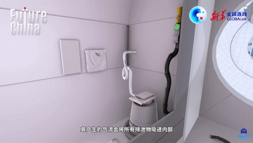 衛生間里的馬桶是專(zhuān)為航天員研制的。它內部安裝了一個(gè)風(fēng)機,其產(chǎn)生的氣流會(huì )將所有排泄物吸進(jìn)內部,并將其抽真空封裝存儲。