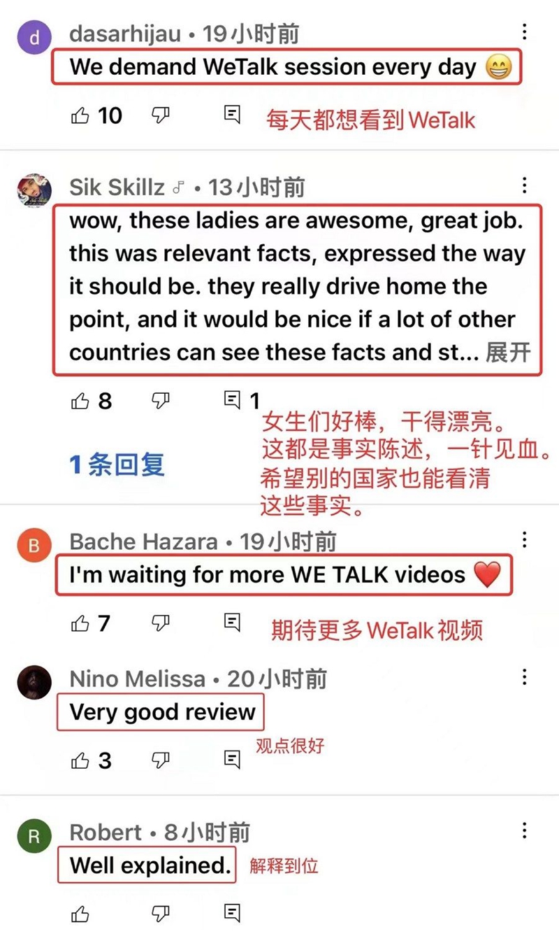 海外網(wǎng)友表示,主持人的點(diǎn)評“一針見(jiàn)血,如果更多國家能夠看到這些事實(shí)并開(kāi)始做出更好的決定,就太好了?!边€有人直呼“解釋到位,觀(guān)點(diǎn)睿智”。