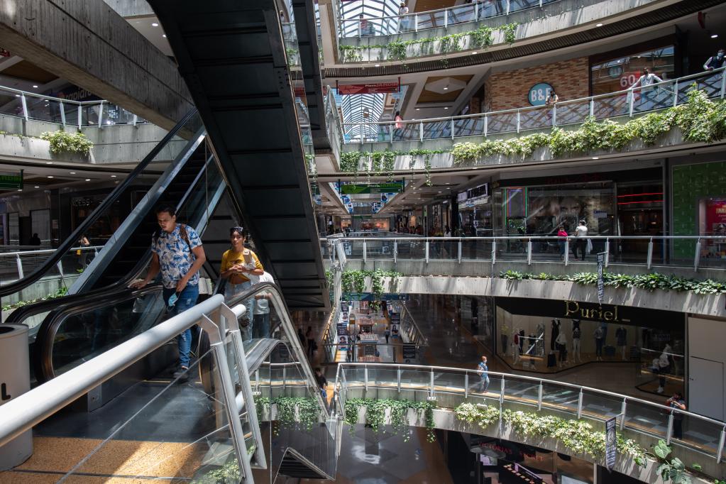 5月3日,委內瑞拉首都加拉加斯市中心,人們在商場(chǎng)購物。新華社記者徐燁攝