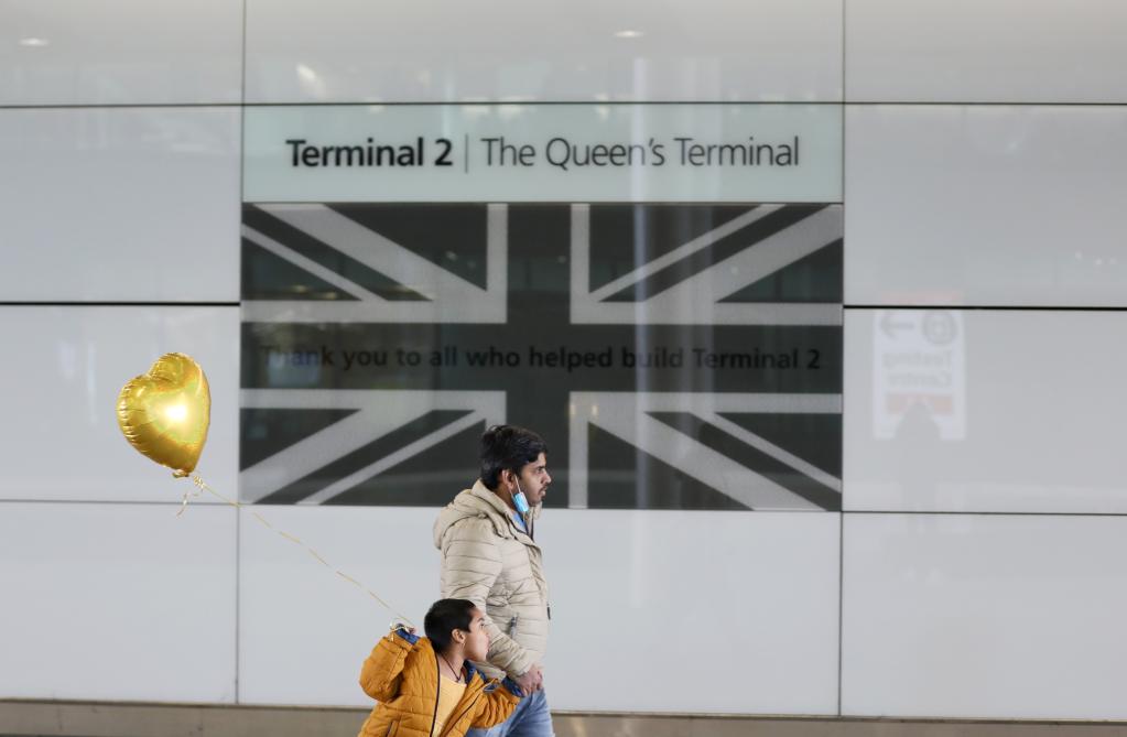 3月18日,旅客走在英國倫敦希思羅機場(chǎng)內。新華社記者李穎攝