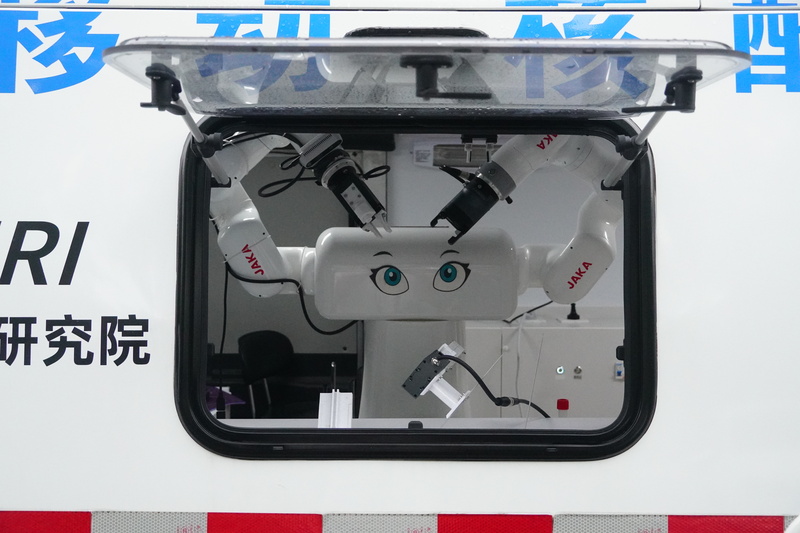 經(jīng)過(guò)多天夜以繼日的奮戰,核酸采樣機器人在上海人工智能研究院誕生。它搭載在研究院與奇瑞控股集團、節卡機器人合作開(kāi)發(fā)的“SAIRI賽瑞”智能核酸采樣車(chē)上,能代替人力,完成核酸采樣整個(gè)過(guò)程。記者今天來(lái)到節卡機器人公司,體驗了一番機器人“采樣員”的工作,感覺(jué)它的采樣操作很規范,“捅嗓子”的動(dòng)作很輕柔。