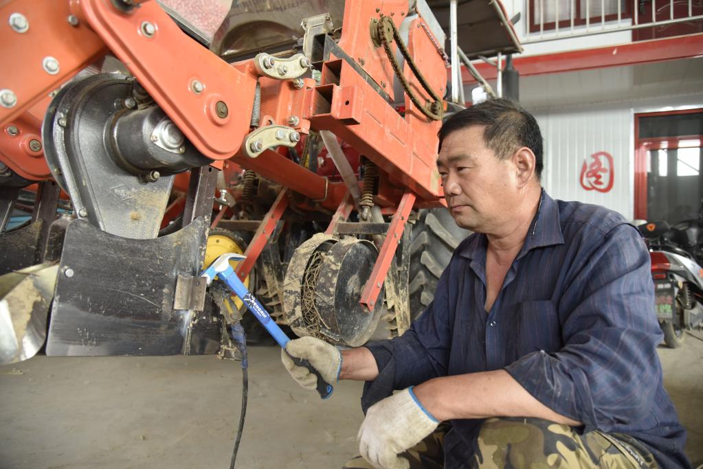 王志成在為改裝的玉米播種機進(jìn)行檢修。(受訪(fǎng)者供圖)