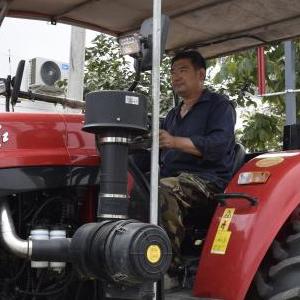 王志成正在試駕不久前新購置的玉米播種機。(受訪(fǎng)者供圖)