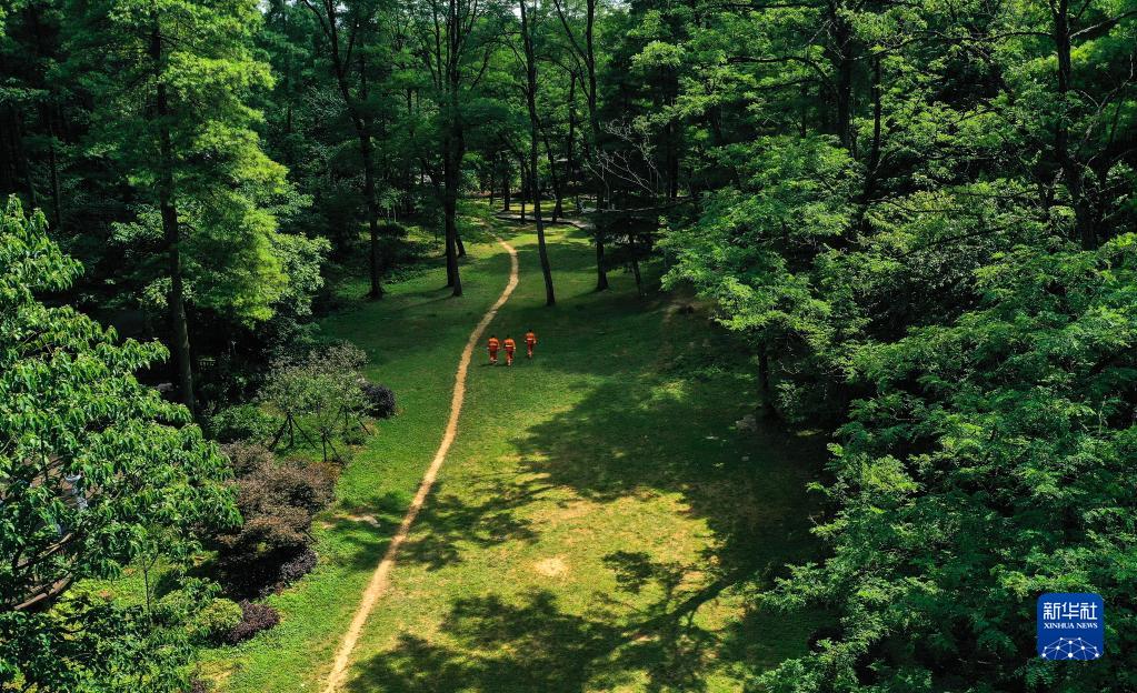 7月13日,護林員在貴陽(yáng)市長(cháng)坡嶺國家級森林公園里巡護(無(wú)人機照片)。 新華社記者 楊文斌 攝