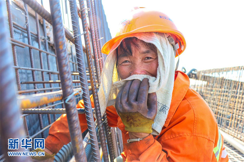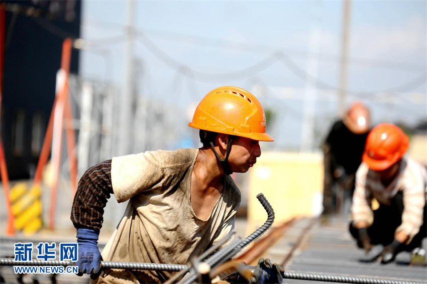 在浙江省交通集團杭甬復線(xiàn)寧波一期項目施工現場(chǎng),S5合同段T梁預制場(chǎng)鋼筋班組工人吳定彬和他的工友們穿梭在施工現場(chǎng),對鋼筋進(jìn)行排序和捆綁。