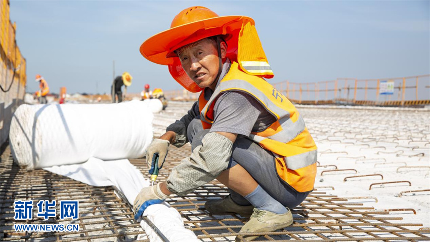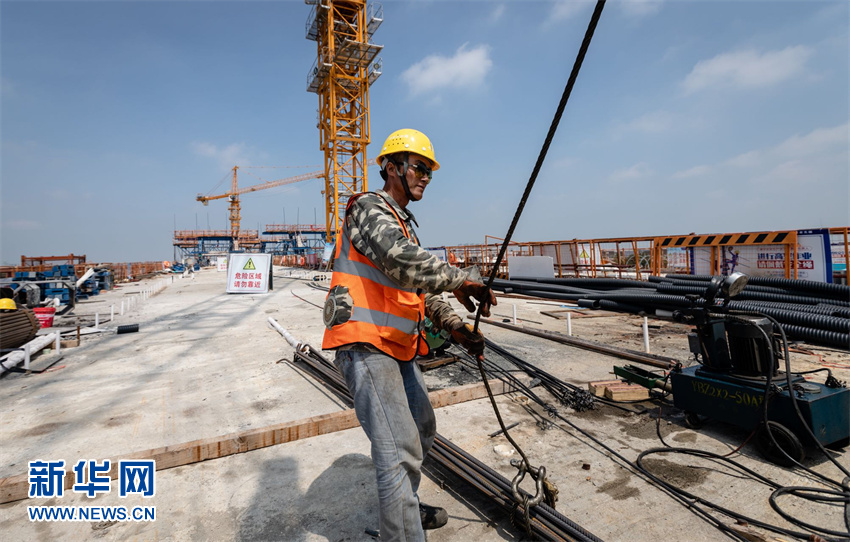 在臺州南鐵路智慧陸港新區項目建設現場(chǎng),工人們在高溫下繼續戶(hù)外作業(yè),爭分奪秒搶工期、加班加點(diǎn)趕進(jìn)度。
