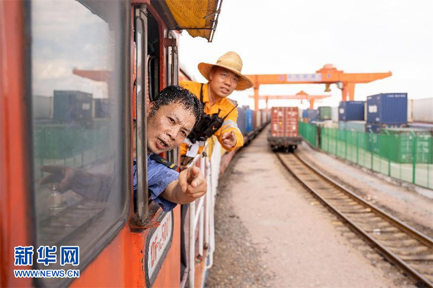 氣溫持續攀升,中歐班列熱度不減?!捌囱b師”們每天跟著(zhù)火車(chē)跑來(lái)跑去,在車(chē)廂爬上爬下,保障“絲綢之路經(jīng)濟帶”的大動(dòng)脈車(chē)輪永不停歇。義烏西站13道線(xiàn)上,穿著(zhù)長(cháng)袖工裝、頭戴草帽、身背安全帶,全副武裝的調車(chē)長(cháng)蔣誠陽(yáng)配合司機,解編需要送去“拼裝”的貨車(chē)車(chē)輛。調車(chē)司機在蔣誠陽(yáng)的配合下緩緩推進(jìn),甩掛連接精準到位,緊接著(zhù)檢查、試拉、接風(fēng)管、撤木鞋、松手閘等步驟一氣呵成,需要“拼裝”的車(chē)輛被緩緩拉走。