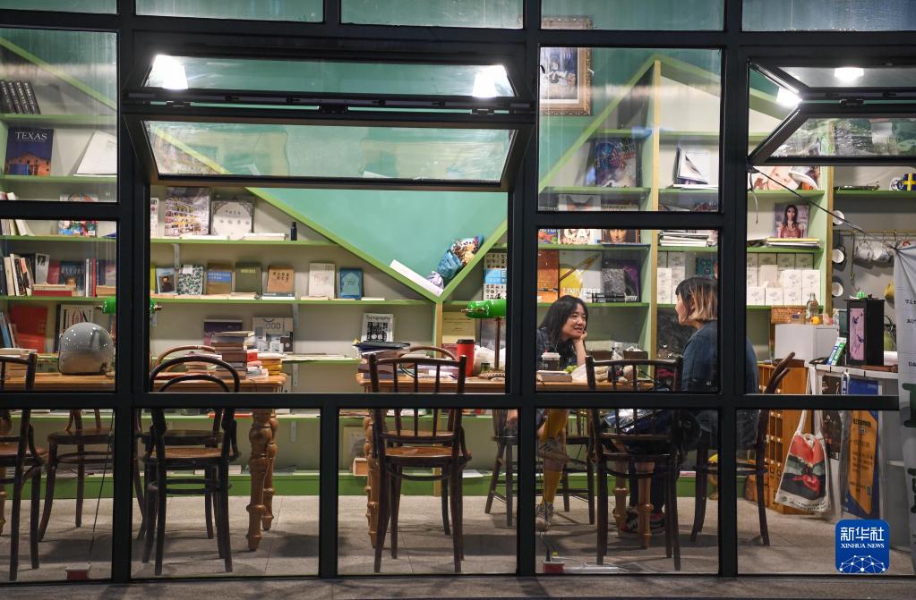 7月21日,顧客在貴州省貴陽(yáng)市南明區青云路“青云市集”的小書(shū)屋里交流。