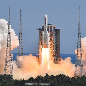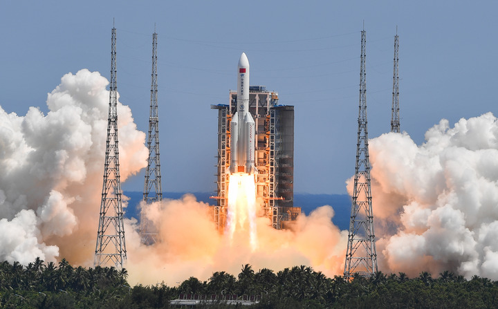 7月24日14時(shí)22分,中國空間站問(wèn)天實(shí)驗艙在海南文昌航天發(fā)射場(chǎng)由長(cháng)征五號B運載火箭托舉升空。