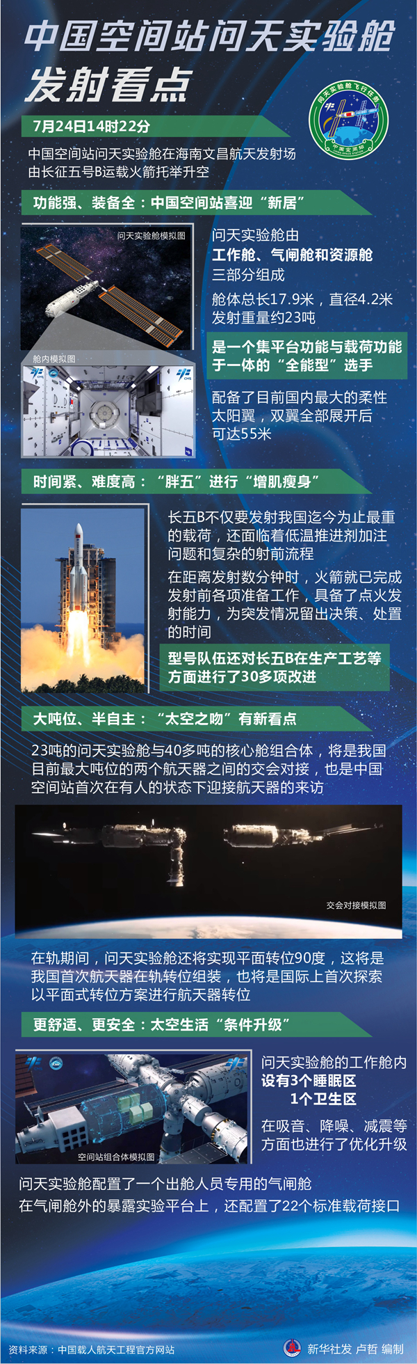 新華社北京7月24日電? 題:中國空間站問(wèn)天實(shí)驗艙發(fā)射看點(diǎn)