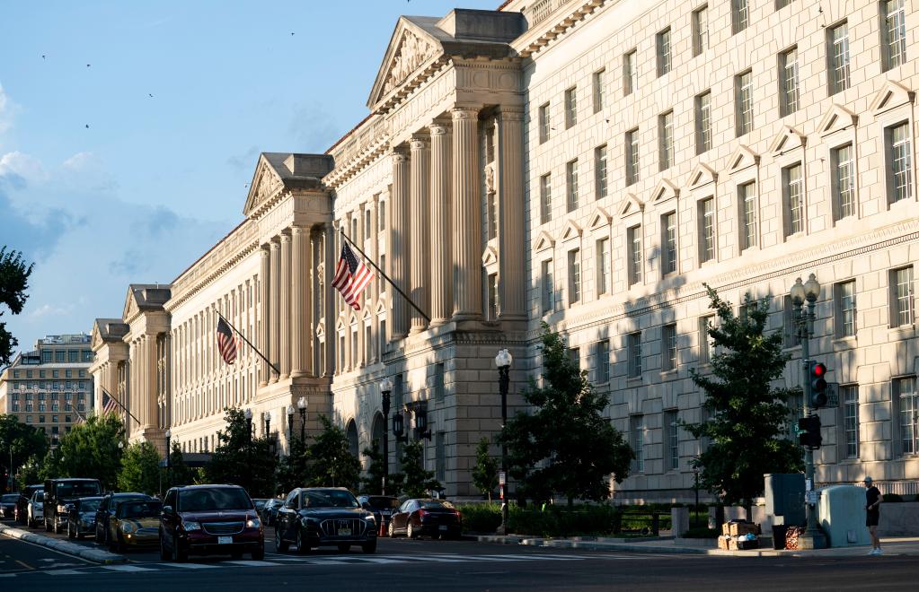 這是7月28日在美國首都華盛頓拍攝的美國商務(wù)部大樓。(新華社記者劉杰 攝)