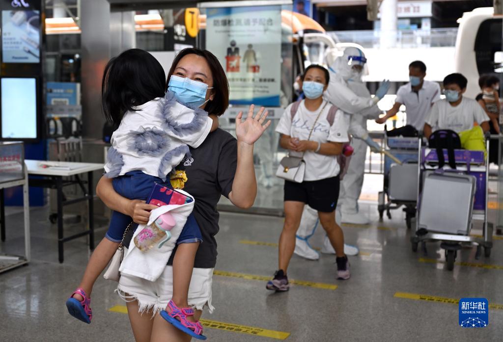 8月9日,滯留三亞的游客進(jìn)入三亞鳳凰國際機場(chǎng)準備登機返程。新華社記者郭程攝