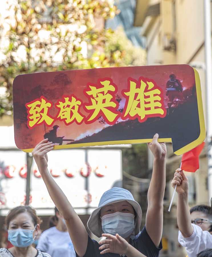 “致敬最美逆行者”“感謝有你守護北碚”……橫幅和標語(yǔ)上書(shū)寫(xiě)著(zhù)感動(dòng),不少人早早放置好礦泉水、西瓜、火鍋底料等,準備送給官兵。