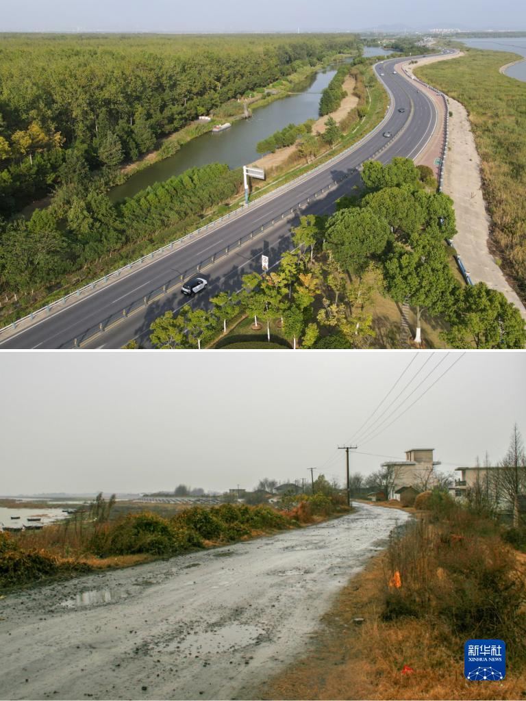 這是一張拼版照片:上圖為2022年9月6日拍攝的巢湖岸線(xiàn)景象(新華社記者張端攝);下圖為2007年拍攝的巢湖岸線(xiàn)景象(資料照片)。