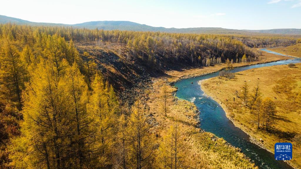這是9月21日拍攝的阿爾山國家森林公園中不凍河的自然風(fēng)光(無(wú)人機照片)。