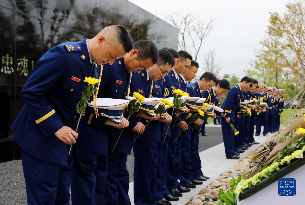 9月30日,消防員在上海松江烈士陵園內的消防烈士紀念園舉行悼念活動(dòng)。新華社記者 方喆 攝