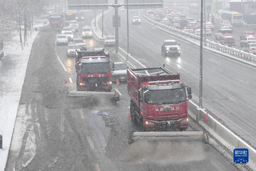 11月12日,在長(cháng)春市亞泰大街,清雪車(chē)輛在清理路面積雪。