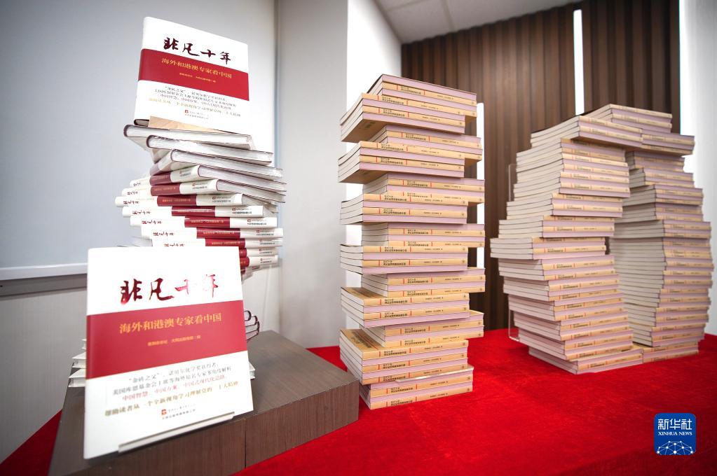 12月2日在新書(shū)發(fā)布會(huì )上拍攝的書(shū)籍《非凡十年:海外和港澳專(zhuān)家看中國》。新華社記者 呂小煒 攝