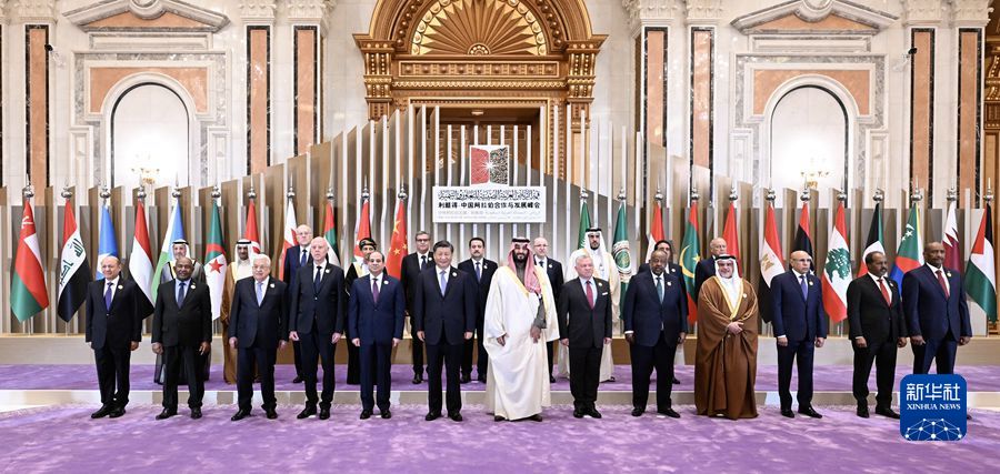 當地時(shí)間12月9日下午,首屆中國-阿拉伯國家峰會(huì )在沙特首都利雅得阿卜杜勒阿齊茲國王國際會(huì )議中心舉行。國家主席習近平和沙特王儲兼首相穆罕默德、埃及總統塞西、約旦國王阿卜杜拉二世、巴林國王哈馬德、科威特王儲米沙勒、突尼斯總統賽義德、吉布提總統蓋萊、巴勒斯坦總統阿巴斯、卡塔爾埃米爾塔米姆、科摩羅總統阿扎利、毛里塔尼亞總統加茲瓦尼、伊拉克總理蘇達尼、摩洛哥首相阿赫努什、阿爾及利亞總理阿卜杜拉赫曼、黎巴嫩總理米卡提等21個(gè)阿盟國家領(lǐng)導人以及阿拉伯國家聯(lián)盟秘書(shū)長(cháng)蓋特等國際組織負責人出席峰會(huì )。習近平在會(huì )上發(fā)表題為《弘揚中阿友好精神 攜手構建面向新時(shí)代的中阿命運共同體》的主旨講話(huà)。新華社記者 謝環(huán)馳 攝