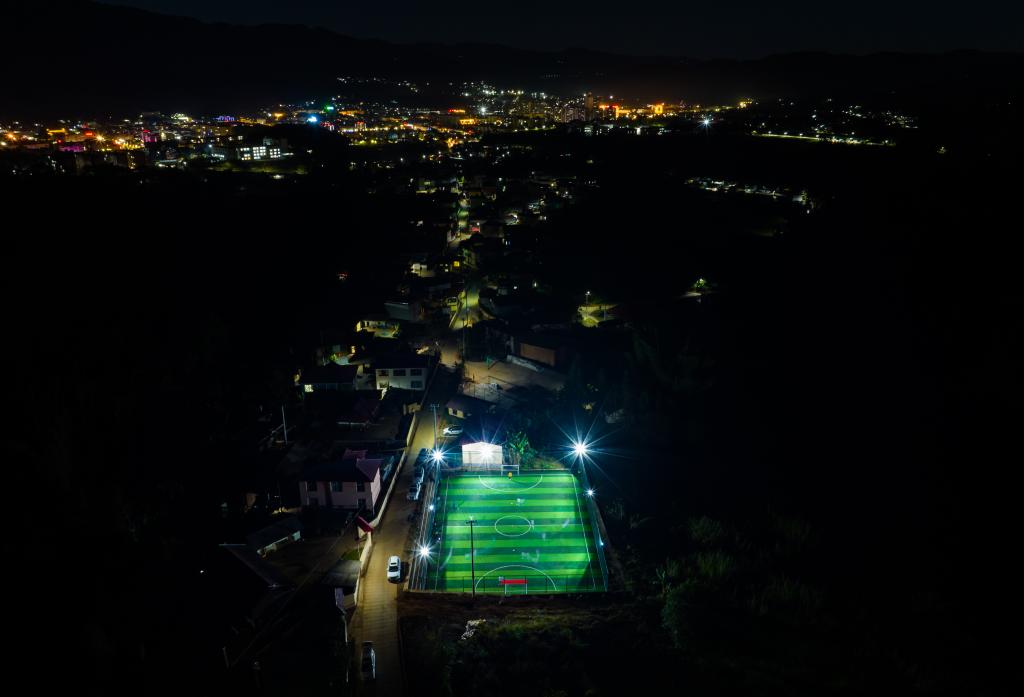 夜色中的云南省滄源佤族自治縣龍乃村足球場(chǎng)(無(wú)人機照片)。
