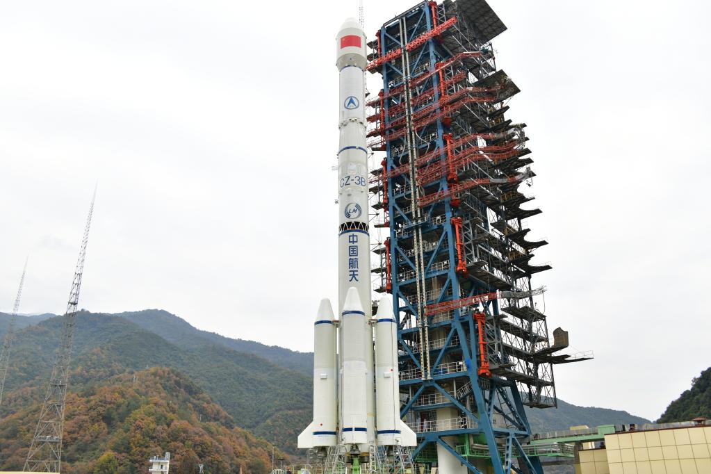 圖為發(fā)射前的長(cháng)征三號乙運載火箭。(航天科技集團一院供圖)