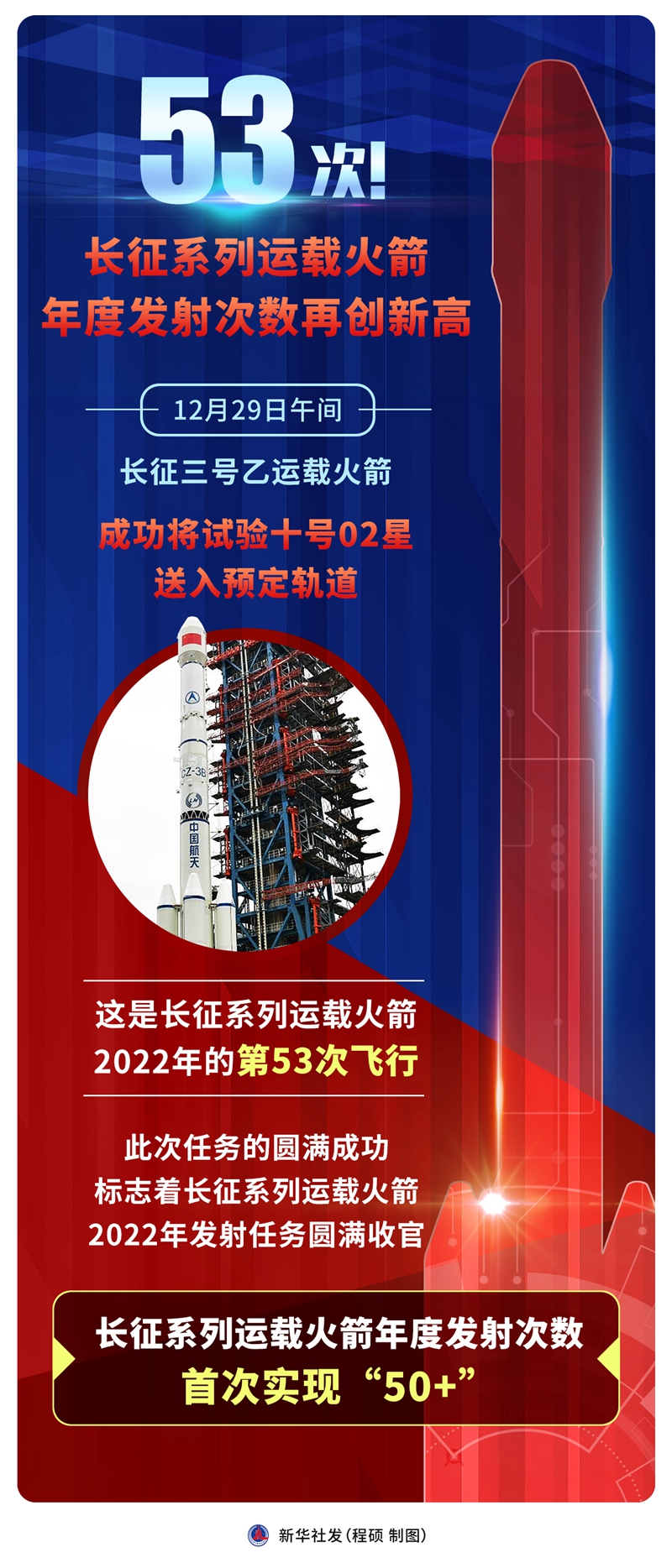 新華全媒+丨53次!長(cháng)征系列運載火箭年度發(fā)射次數再創(chuàng )新高