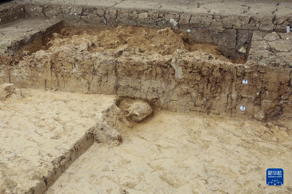 湖北十堰市學(xué)堂梁子(鄖縣人)舊石器時(shí)代遺址發(fā)掘現場(chǎng)被命名為“鄖縣人3號頭骨”古人類(lèi)頭骨化石出土情況(資料照片)。新華社發(fā)
