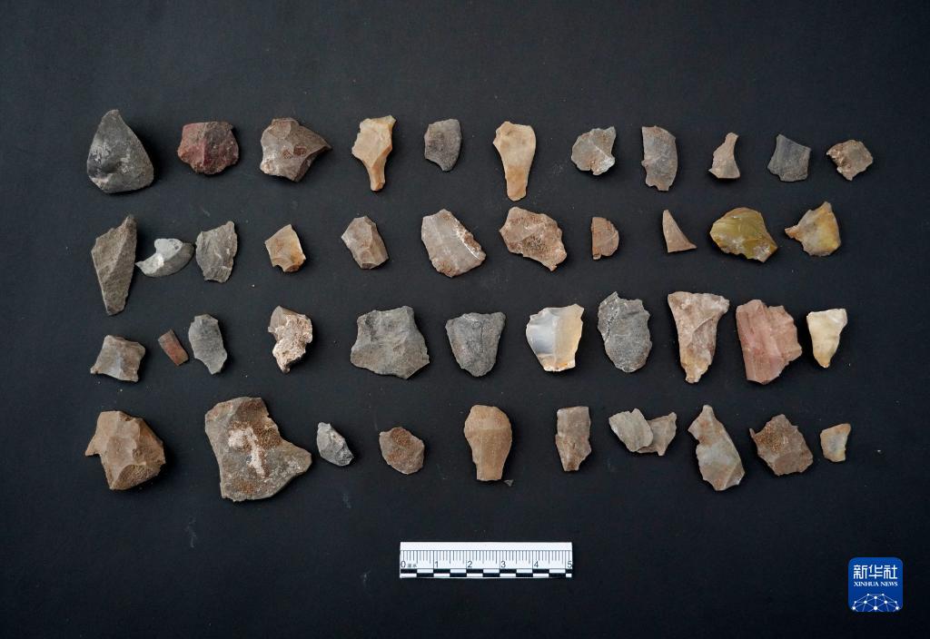 河北尚義縣四臺新石器時(shí)代遺址出土的石片及刮削器(資料照片)。新華社發(fā)