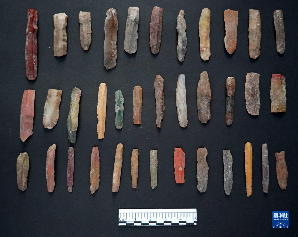 河北尚義縣四臺新石器時(shí)代遺址出土的細石葉(資料照片)。新華社發(fā)
