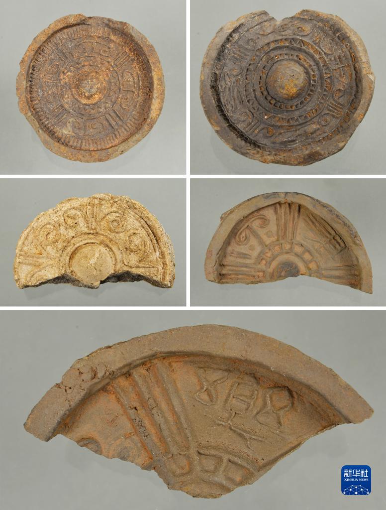 云南昆明市河泊所青銅時(shí)代遺址出土的瓦當(拼版照片)。新華社發(fā)