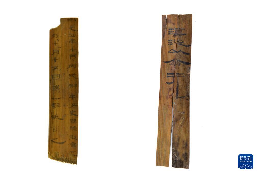 云南昆明市河泊所青銅時(shí)代遺址出土的簡(jiǎn)牘(拼版照片)。新華社發(fā)